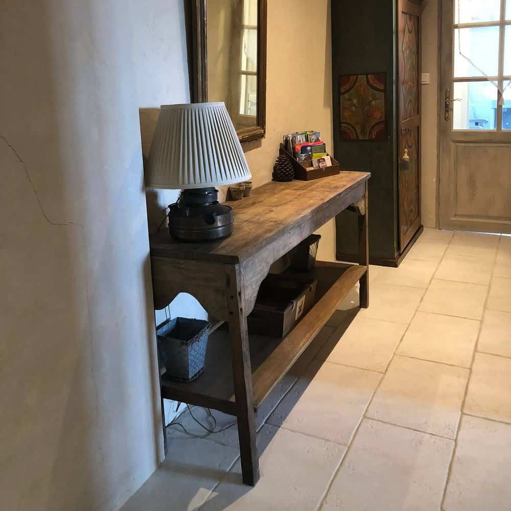 In May, we added an old cabinet for linens. This cabinet is a family heirloom and comes from the Alsace region. We also added an old table lamp, which is now placed in the hallway.